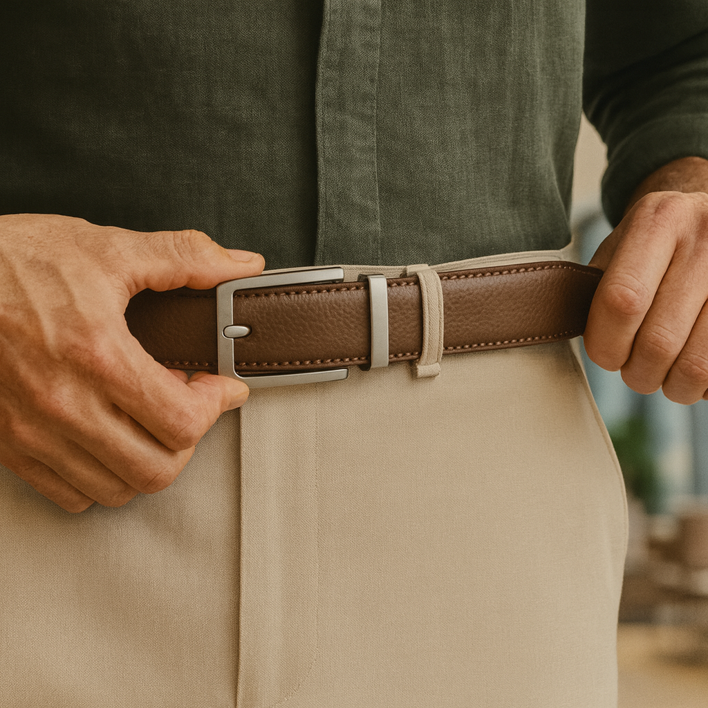 Onze riem zonder gaatjes is een statement van stijl, innovatie en duurzaamheid. Ontworpen voor mannen die niets aan het toeval overlaten.