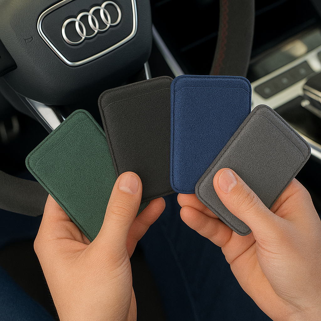 Gemaakt van luxueus Italiaans Alcantara houdt deze MagSafe-wallet je essentials altijd dichtbij met magnetische precisie. Slank, zacht en verfijnd — draag je kaarten in stijl.