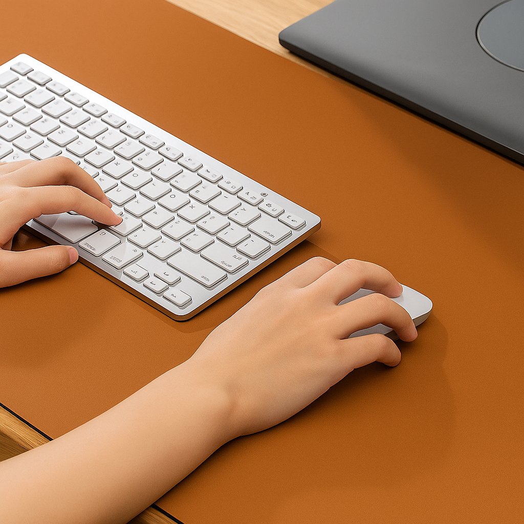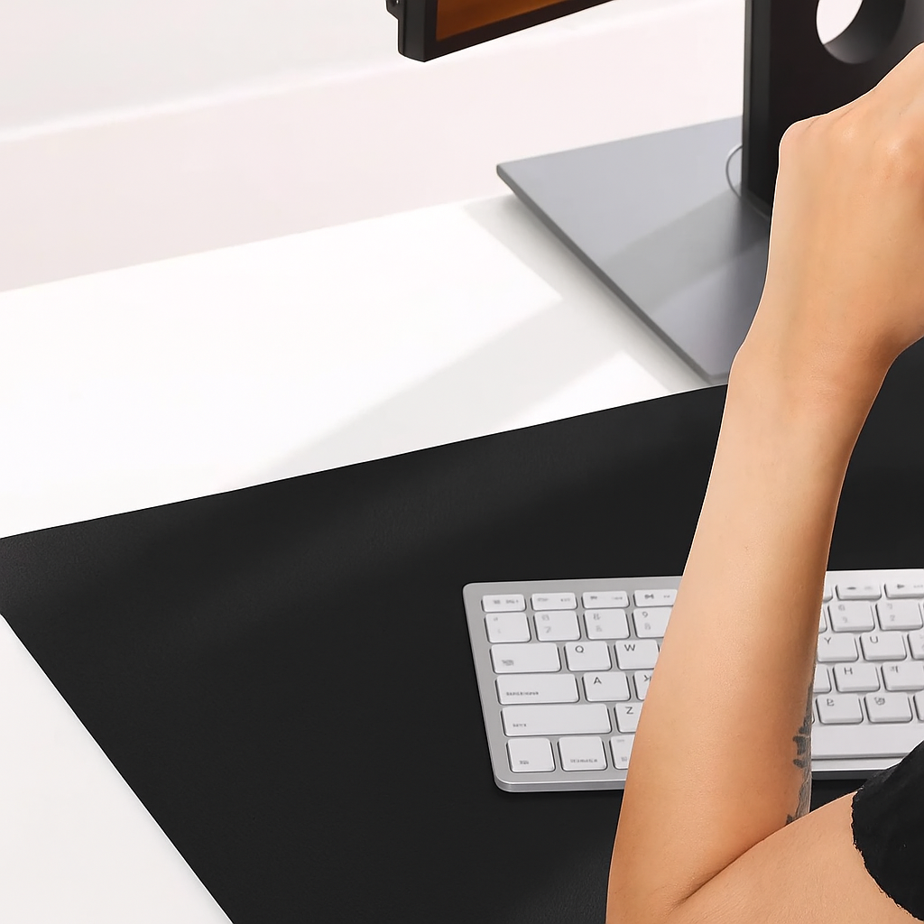Bescherm je bureau en til je werkplek naar een hoger niveau met deze strakke deskmat van premium vegan leer. Waterafstotend, anti-slip en perfect op maat voor je laptop, muis en meer — omdat elk detail telt.